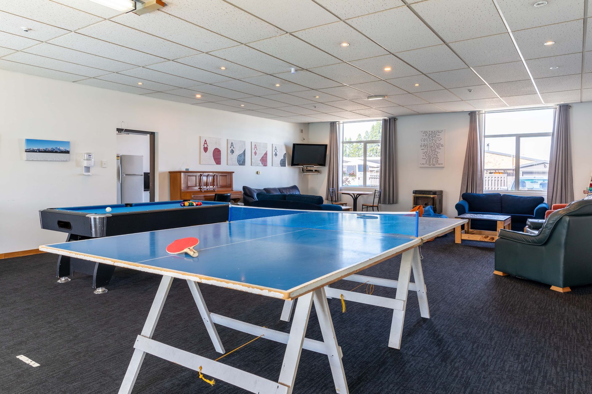 Popular for the kids and the big kids too is our games room where you can entertain yourself for hours with pool, table tennis, foosball, boardgames, puzzles and TV. It is a great place for kids when the weather turns especially on mountain closed days. There is also a guest fridge and microwave for use in this space.